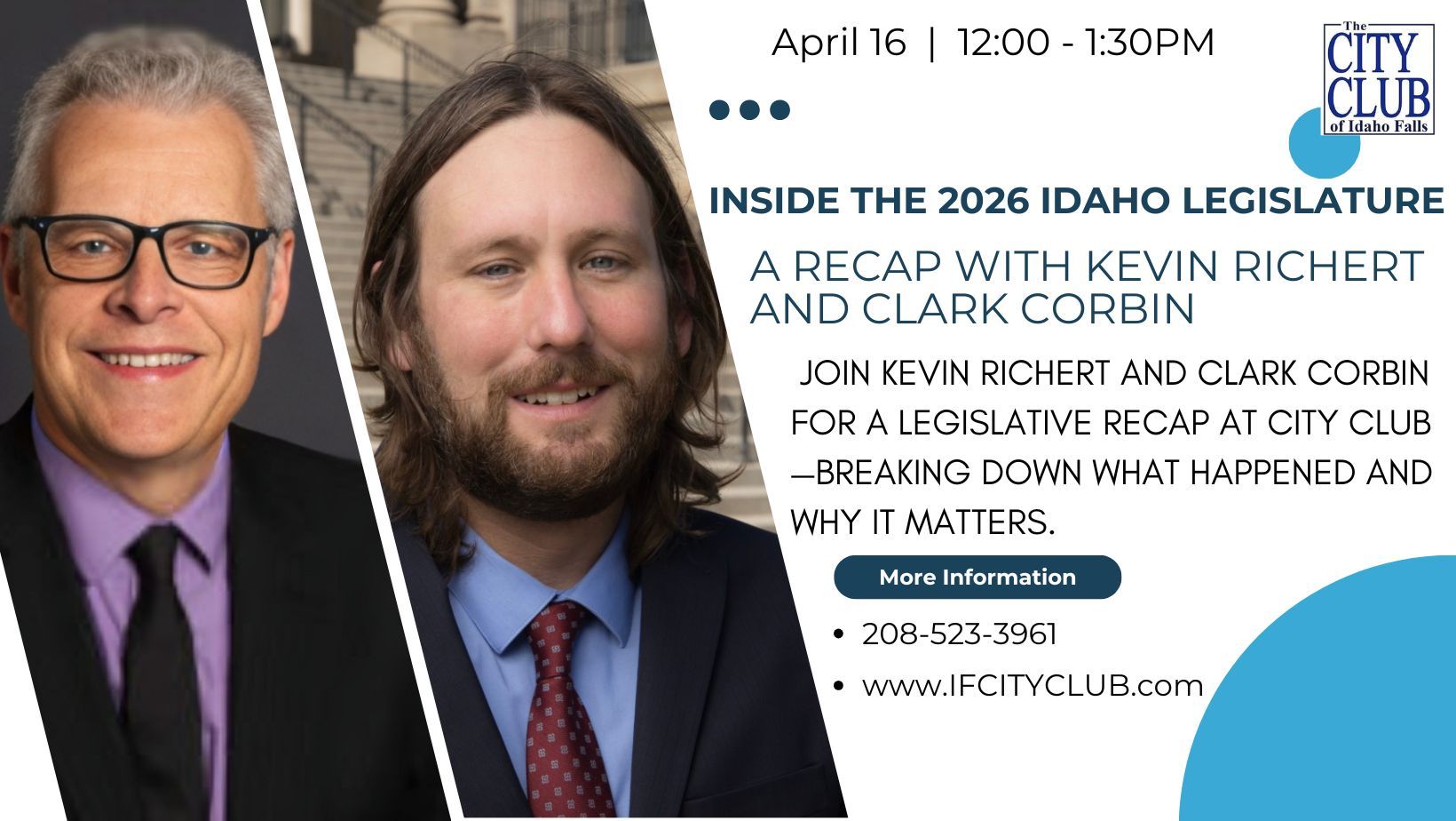 Kevin Richert and Clark Corbin—two of Idaho’s most respected statehouse reporters—are coming to Idaho Falls for an in-depth Legislative Recap you won’t want to miss.